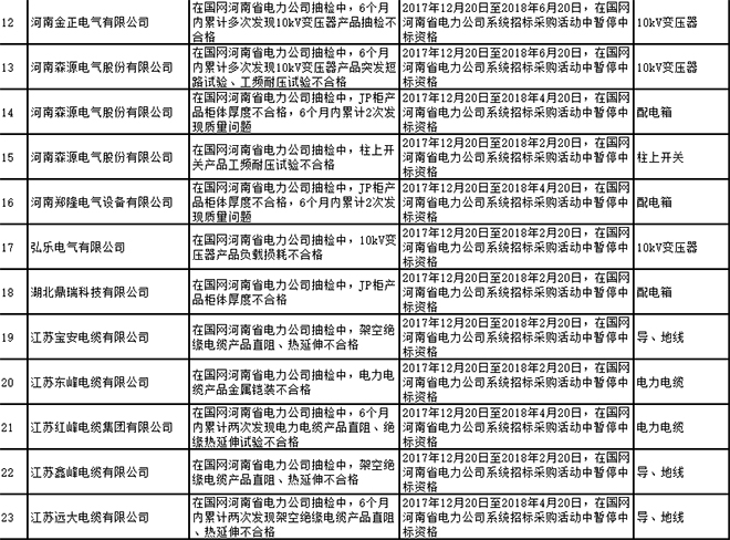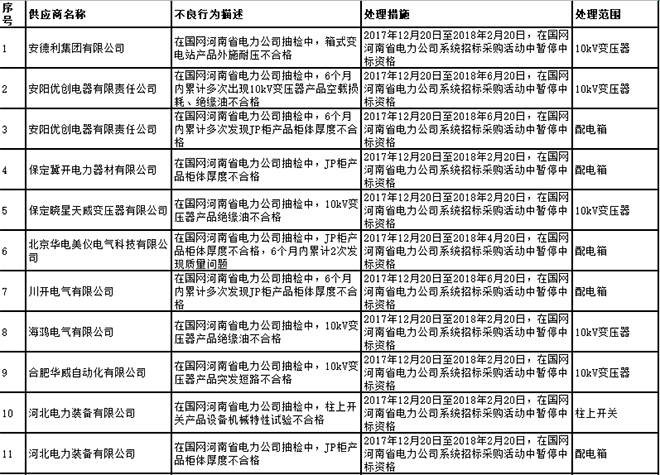 國網(wǎng)河南省電力公司2017年第四批供應(yīng)商不良行為處置通報(bào)
