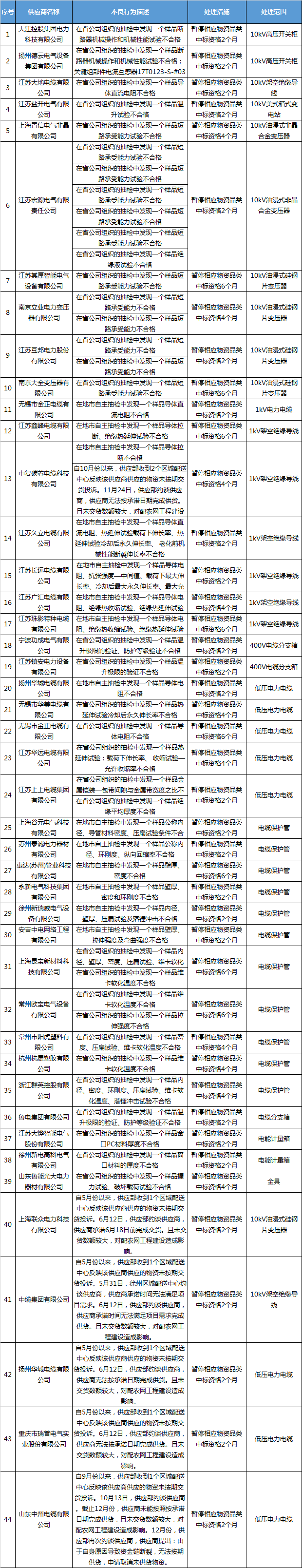 國網(wǎng)江蘇關(guān)于2017年第十批供應(yīng)商不良行為處理結(jié)果