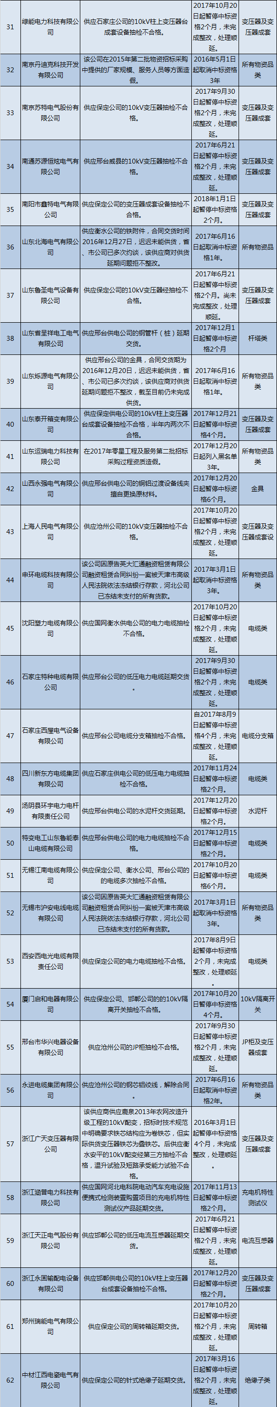 國網(wǎng)河北關(guān)于不良行為供應(yīng)商情況的通報(bào)(2018.1)