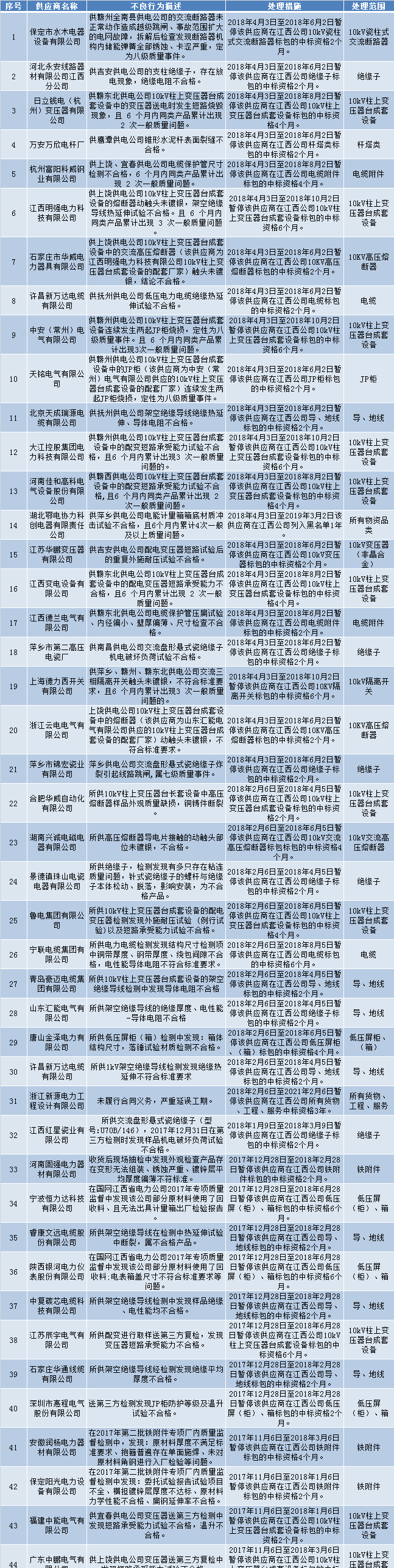 國網(wǎng)(江西)通報的供應商不良行為處理情況(2018.4)