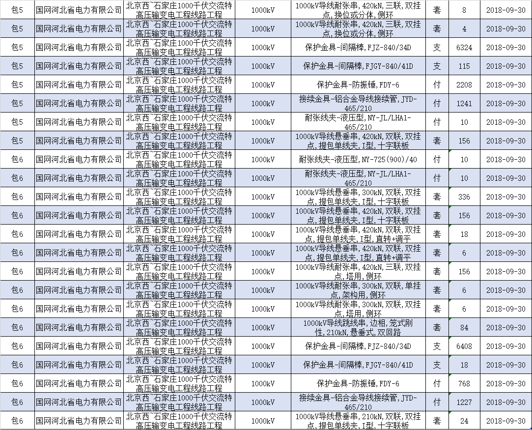 國家電網(wǎng)有限公司2018年北京西~石家莊1000千伏交流特高壓工程導線集中招標活動公布,其中涉及光纜、線路金具、絕緣子、導線四類物資,具體內(nèi)容如下: