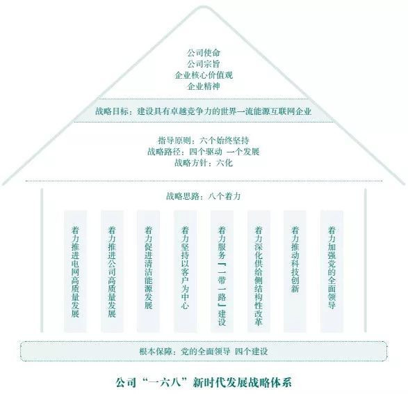 新時(shí)代催生新戰(zhàn)略,新戰(zhàn)略呼喚新文化。中國(guó)特色社會(huì)主義進(jìn)入新時(shí)代,為公司事業(yè)發(fā)展搭建了廣闊舞臺(tái),提供了寶貴機(jī)遇。公司準(zhǔn)確把握歷史方位、能源革命趨勢(shì)和企業(yè)發(fā)展規(guī)律,確立了“一六八”新時(shí)代發(fā)展戰(zhàn)略體系,開啟了建設(shè)具有卓越競(jìng)爭(zhēng)力的世界一流能源互聯(lián)網(wǎng)企業(yè)的新征程。文化建設(shè)是支撐戰(zhàn)略實(shí)現(xiàn)的根本保障。強(qiáng)化文化驅(qū)動(dòng),推動(dòng)文化登高,建設(shè)更具引領(lǐng)力、凝聚力和推動(dòng)力的新時(shí)代國(guó)家電網(wǎng)企業(yè)文化,是實(shí)現(xiàn)新時(shí)代發(fā)展戰(zhàn)略的必然選擇和現(xiàn)實(shí)需要。為此,公司組織編輯出版《企業(yè)文化建設(shè)工作指引(2018)》,闡釋了公司定位、公司使命、公司宗旨、核心價(jià)值觀、企業(yè)精神等價(jià)值理念和發(fā)展戰(zhàn)略體系的時(shí)代內(nèi)涵,發(fā)布了“十三五”企業(yè)文化建設(shè)規(guī)劃,制定了“旗幟領(lǐng)航·文化登高”行動(dòng)計(jì)劃,下達(dá)了2018年企業(yè)文化建設(shè)項(xiàng)目計(jì)劃,為公司企業(yè)文化建設(shè)提供了方向指引和行動(dòng)指南。