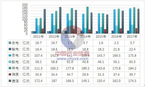 2011-2017年我國智能電網(wǎng)各細分領域建設概況